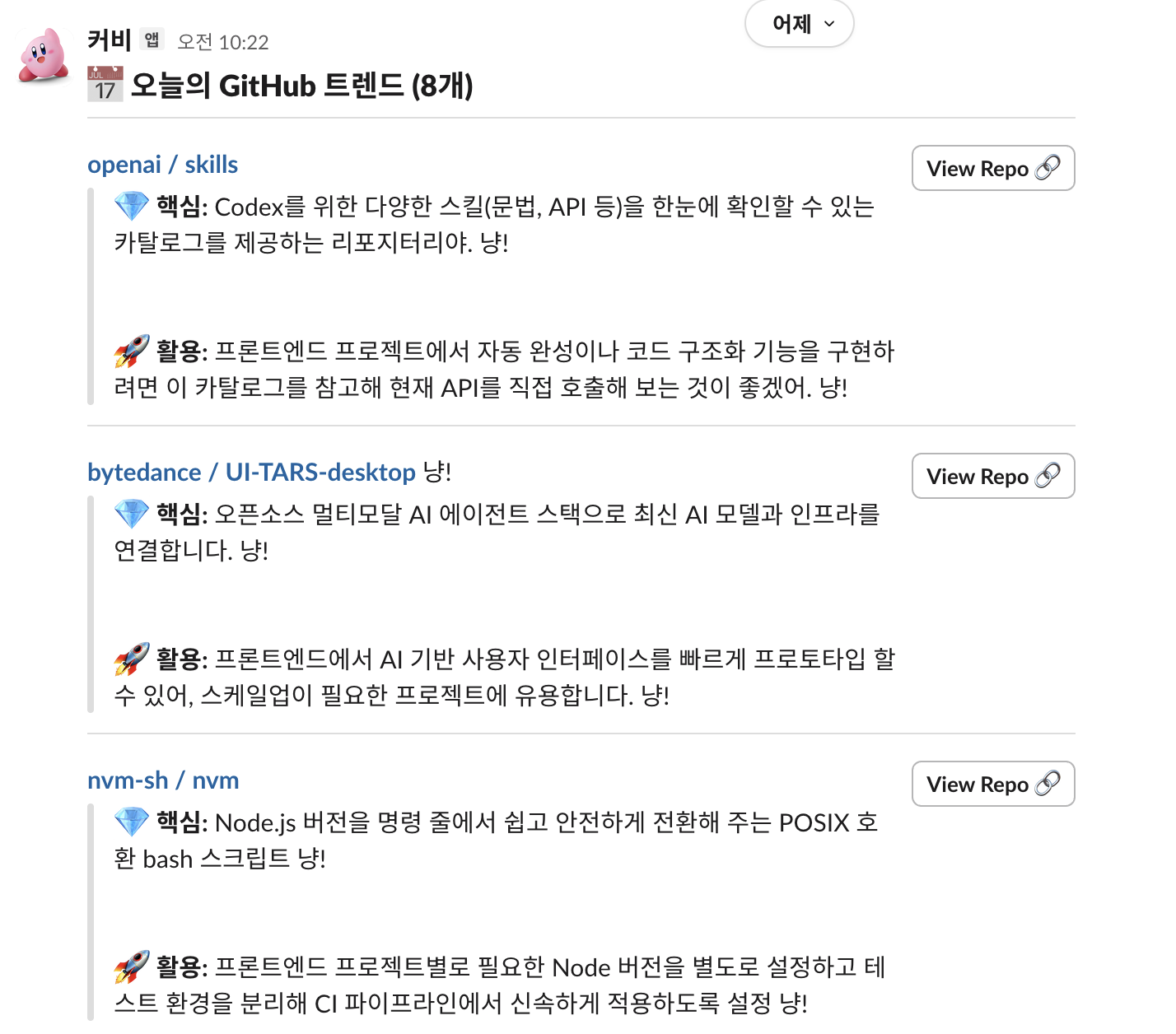 난 출근해서 깃허브 트렌드 레포지토리를 자주 본다. 딱히 엄청난 정보는 아니지만 혹시나 쓸모있는게 있을까봐?